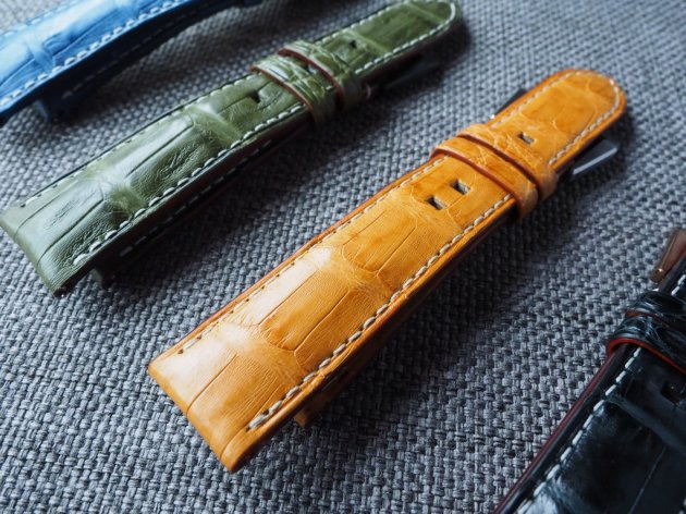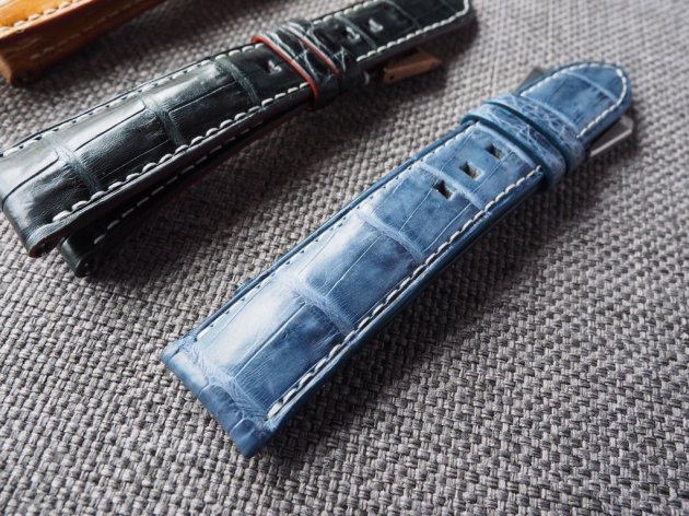 選材於歐洲奢侈品牌愛用染廠。凱門鱷魚不同於短吻鱷,風格粗曠,深受大錶徑錶迷喜愛。