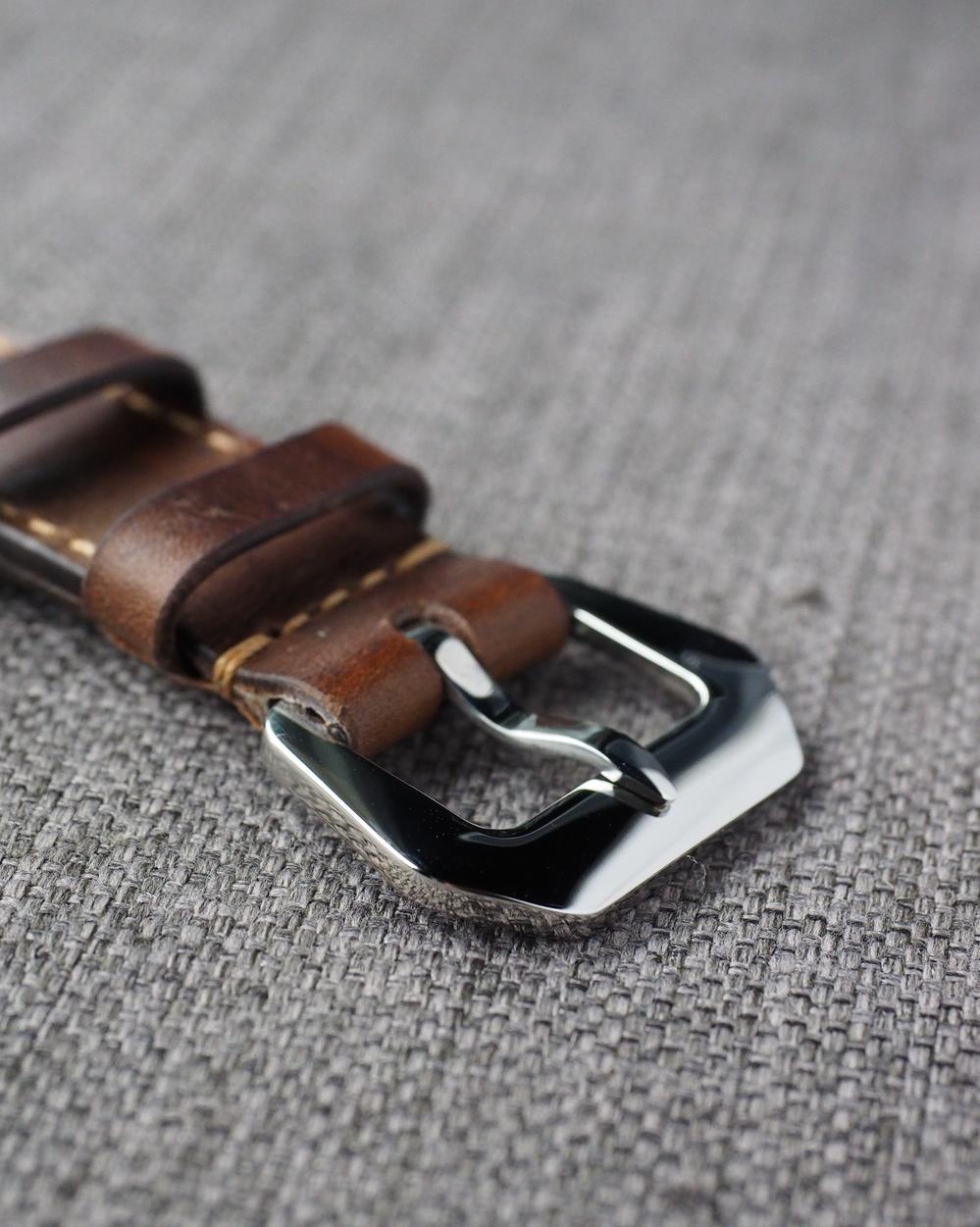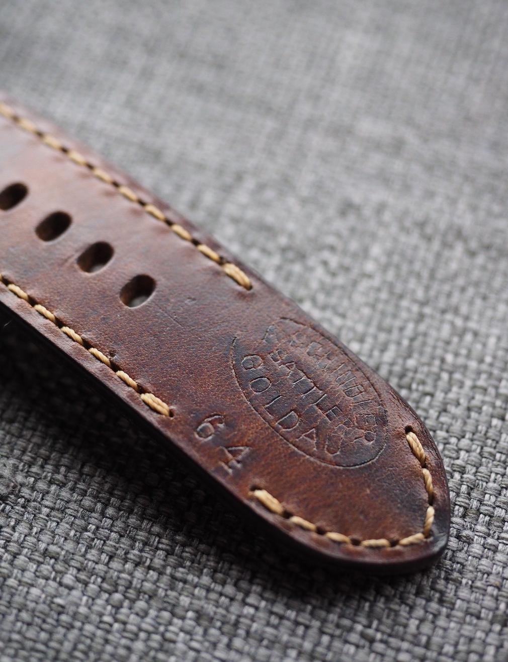 特殊錶帶環,由古董軍袋上的拌扣製作而成。